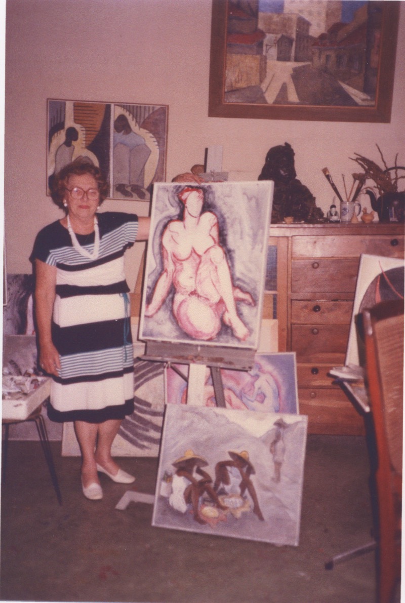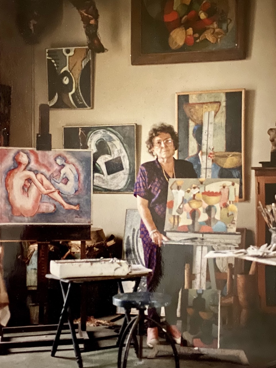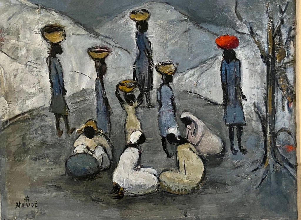 Andrée Naudé was schooled in Paris where she devoted herself to painting, attending several academies (Julian, Grande Chaumière, Scandinavia) and working in the studio of well known painters such as Waroquier, Fritz and later André Lhote. Between 1928 and 1931, Naudé exhibited in Paris at the Salon des Tuileries, the Autumn Salon, with the Grand Morin painters, and in Greece with a group of young painters working in Paris. She had lived in Haiti since 1931, and has established a studio in Tête de l’Eau which has become a gathering place for many of Haiti’s women painters. With the creation of the Art Center in 1944 she began taking part in its exhibitions and also exhibited in Cap-Haitien with Tamara Baussan and Helen Schomberg. From 1963 to 1985, Naudé’s work has been on permanent exhibit in numerous countries: Brazil, Chile, the Dominican Republic, the United States and Canada, where a solo exhibition of her work, 50 Years of Painting, took place in 1978, inaugurated by Pierre Monosiet. In Haiti, as well, her work is present in various permanent collections, notably at the Marassa and Mapou galeries. She has taken part in many exhibitions featuring female painters. ( La Peinture Haitienne/ Haitian Arts, Editions Nathan, Paris, pp. 55)